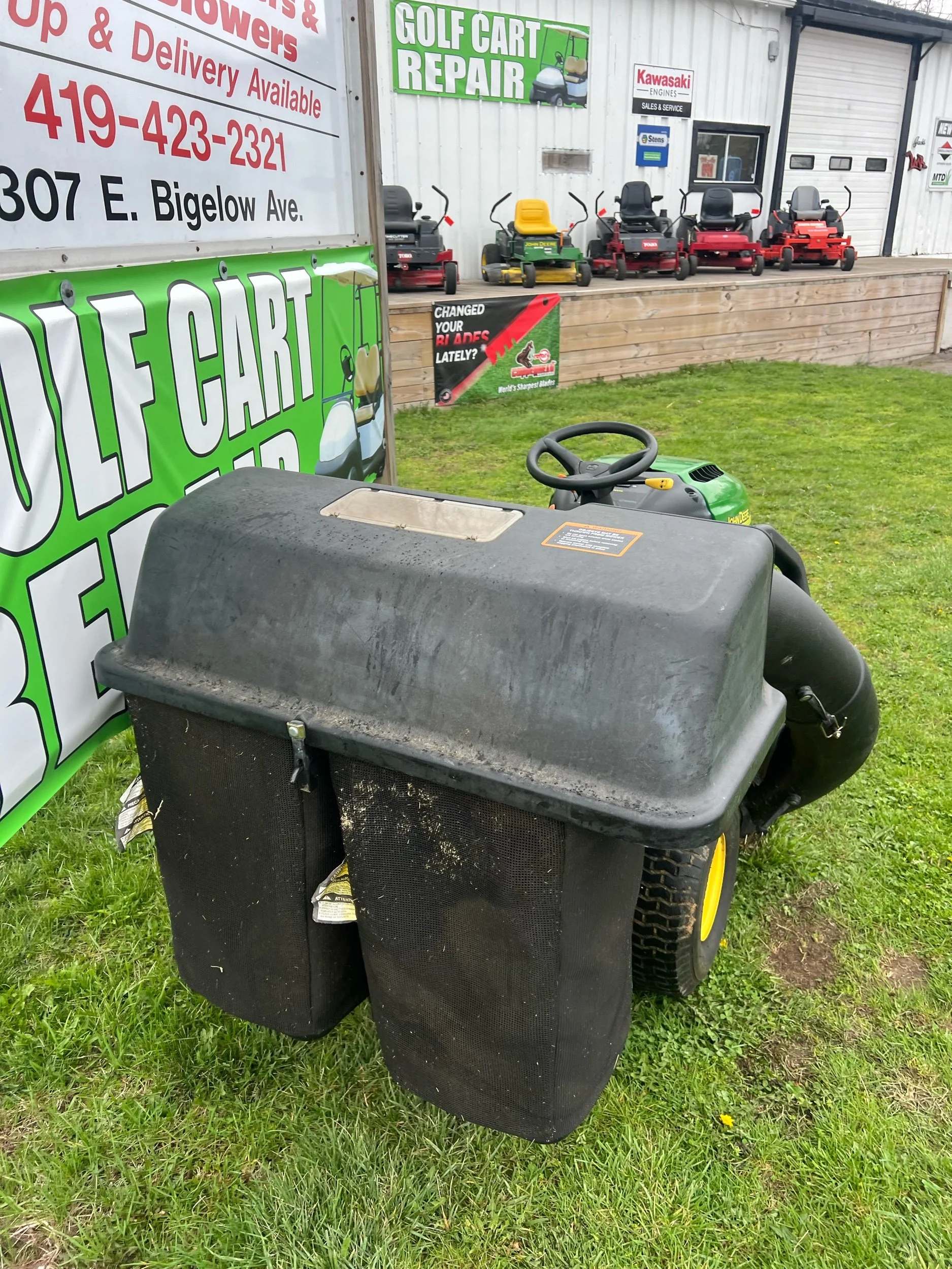 Image 1 of 3 Image 2 of 3 Image 3 of 3 John Deere with bagger $1,350.00 John Deere rider with double bagger Purchase Added! John Deere rider with double bagger