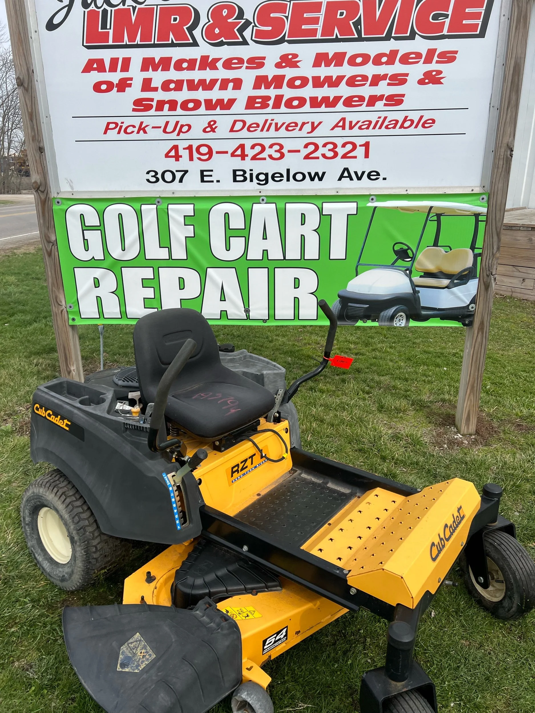 Cub cadet 54 inch zero turn runs great. $1899 plus tax. Located at Jacks lawnmower shop at 307 E. Bigelow Ave. Findlay Ohio open Monday through Friday 9 to 430 and Saturday 9-1. Delivery is available at buyers expense. All units come with warranty 419-423-2321. Trade-ins are welcome. If you would like to purchase over the phone for delivery, please ask for Blake. We have over 100 units in stock.