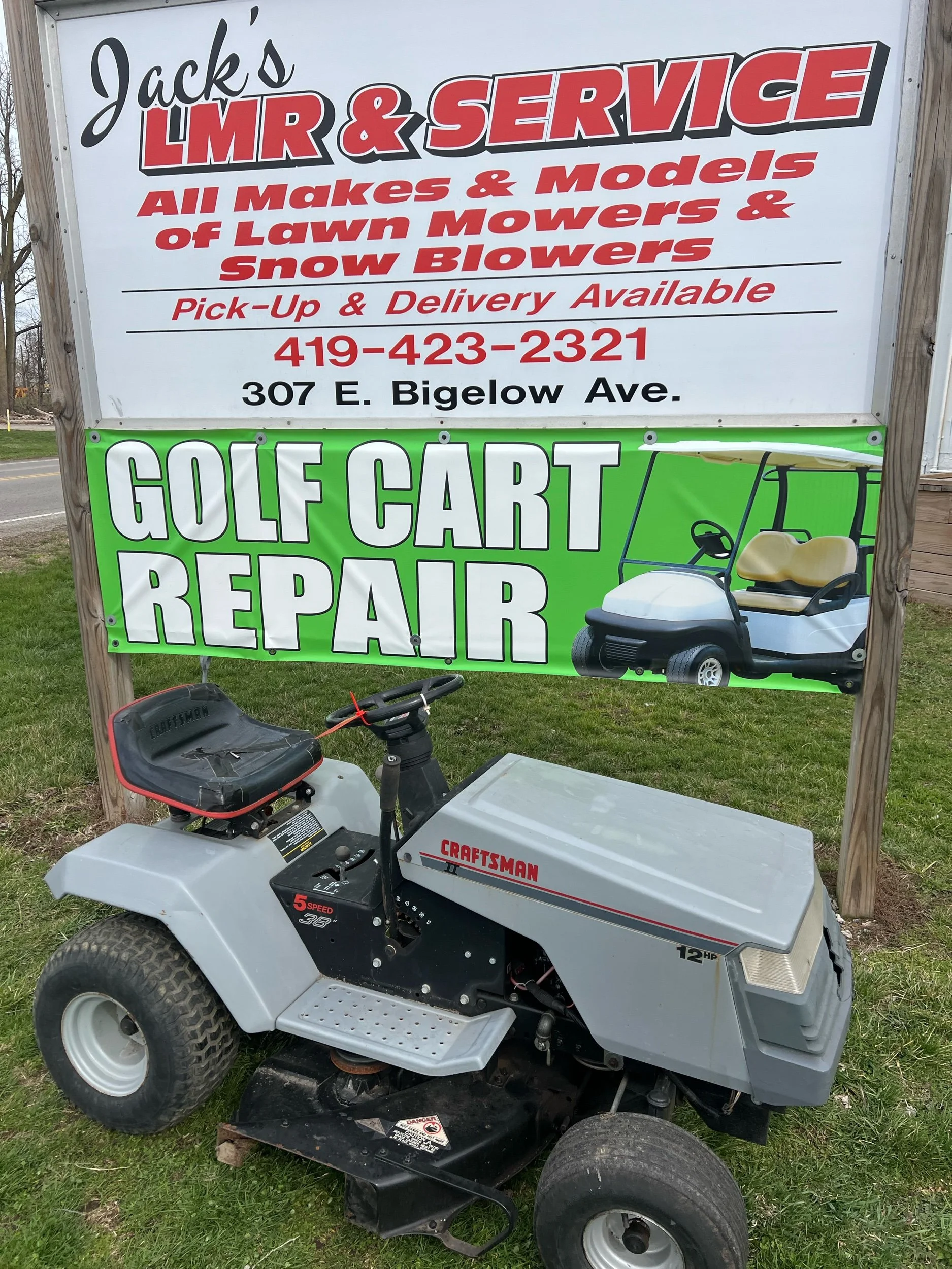 Craftsman mower runs good. $575 plus tax. Located at Jacks lawnmower shop at 307 E. Bigelow Ave. Findlay Ohio open Monday through Friday 9 to 430 and Saturday 9-1. Delivery is available at buyers expense. All units come with warranty 419-423-2321. Trade-ins are welcome. If you would like to purchase over the phone for delivery, please ask for Blake. We have over 100 units in stock.