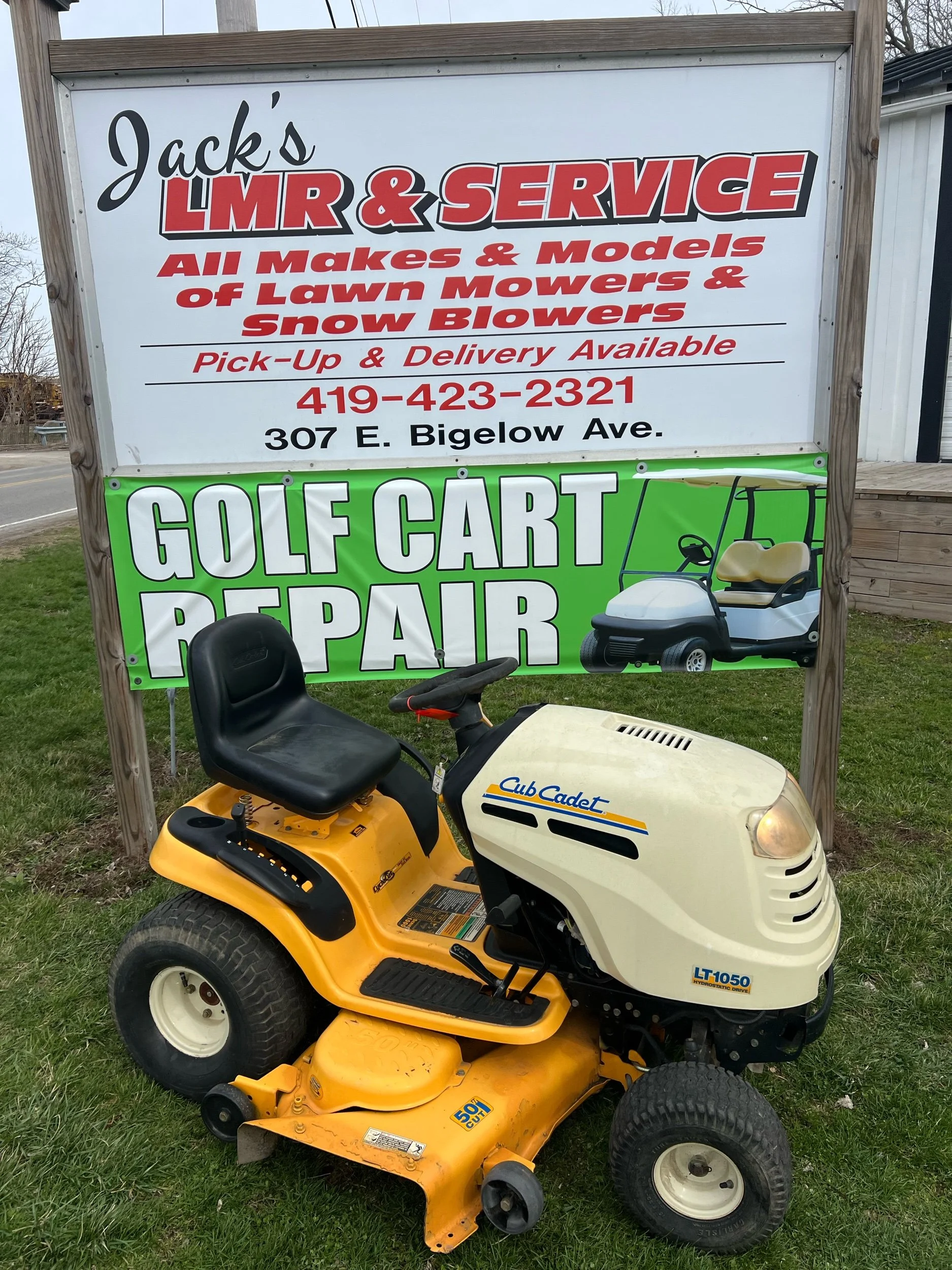 Cub cadet 50 inch runs good. $999 plus tax. Located at Jacks lawnmower shop at 307 E. Bigelow Ave. Findlay Ohio open Monday through Friday 9 to 430 and Saturday 9-1. Delivery is available at buyers expense. All units come with warranty 419-423-2321. Trade-ins are welcome. If you would like to purchase over the phone for delivery, please ask for Blake. We have over 100 units in stock.