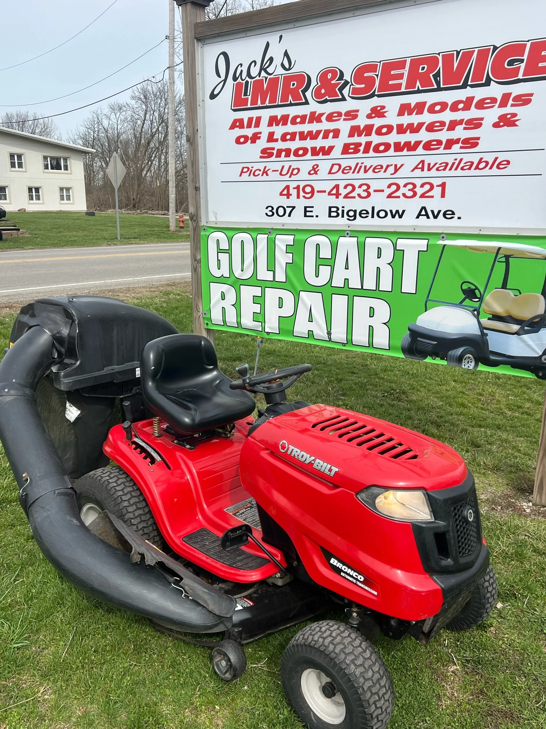 42 inch Troy bilt mower with bagger runs good! $1095 plus tax. Located at Jacks lawnmower shop at 307 E. Bigelow Ave. Findlay Ohio open Monday through Friday 9 to 430 and Saturday 9-1. Delivery is available at buyers expense. All units come with warranty 419-423-2321. Trade-ins are welcome. If you would like to purchase over the phone for delivery, please ask for Blake. We have over 100 units in stock.