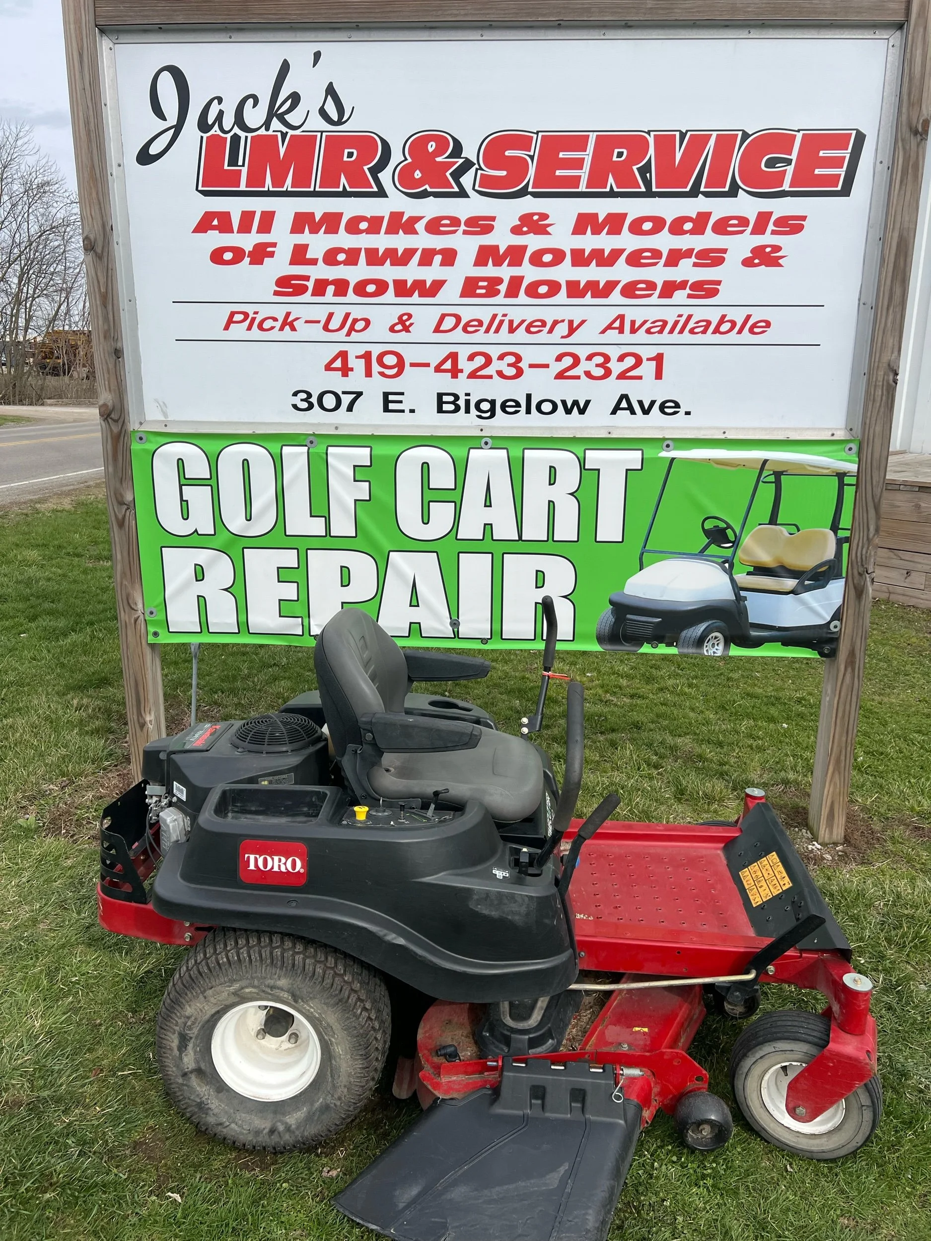Toro zero turn. Runs amazing. $2150 plus tax. Located at Jacks lawnmower shop at 307 E. Bigelow Ave. Findlay Ohio open Monday through Friday 9 to 430 and Saturday 9-1. Delivery is available at buyers expense. All units come with warranty 419-423-2321. Trade-ins are welcome. If you would like to purchase over the phone for delivery, please ask for Blake. We have over 100 units in stock.