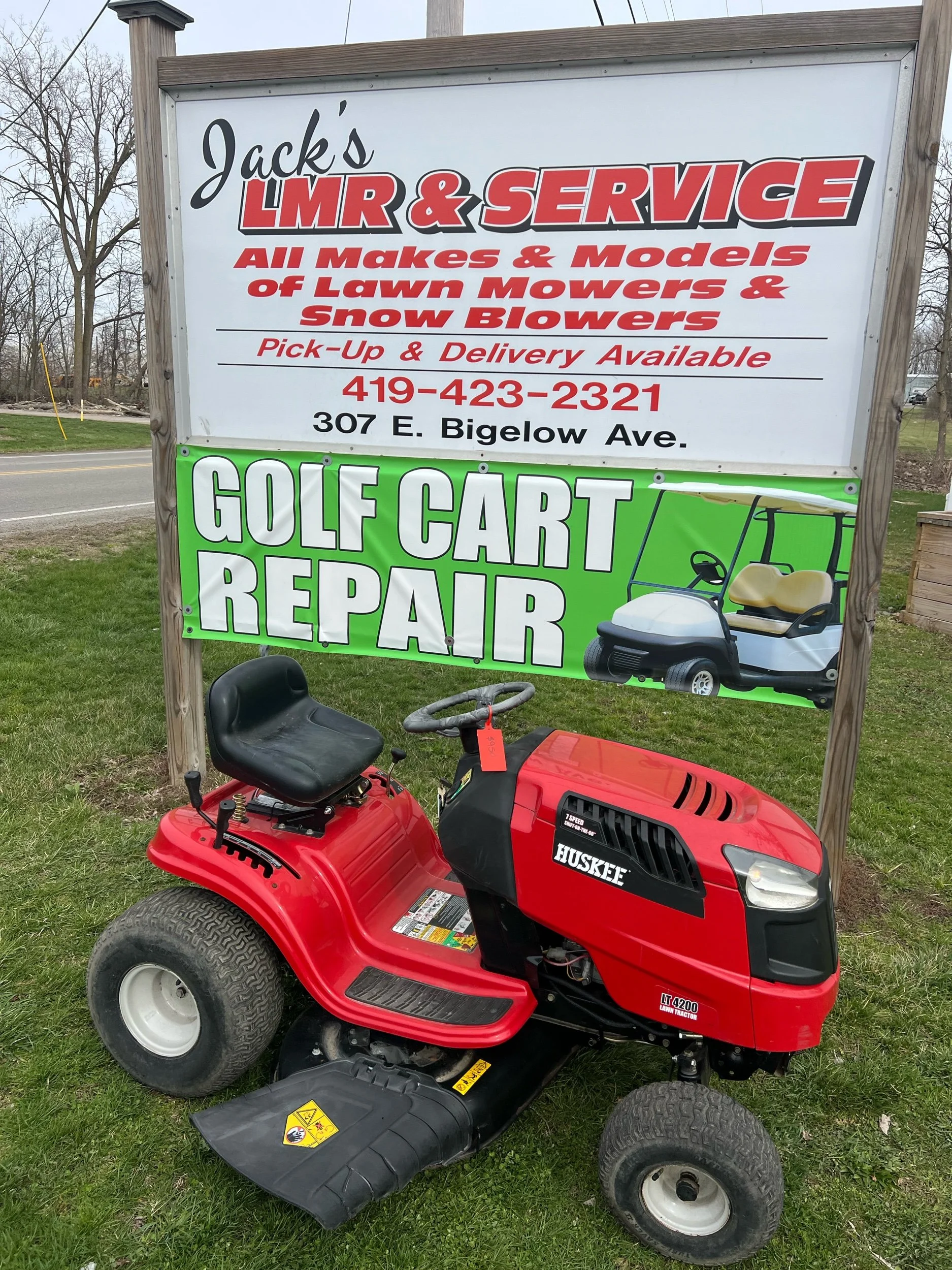 Huskee rider. Runs good. 42 inch $950 plus tax. Located at Jacks lawnmower shop at 307 E. Bigelow Ave. Findlay Ohio open Monday through Friday 9 to 430 and Saturday 9-1. Delivery is available at buyers expense. All units come with warranty 419-423-2321. Trade-ins are welcome. If you would like to purchase over the phone for delivery, please ask for Blake. We have over 100 units in stock.