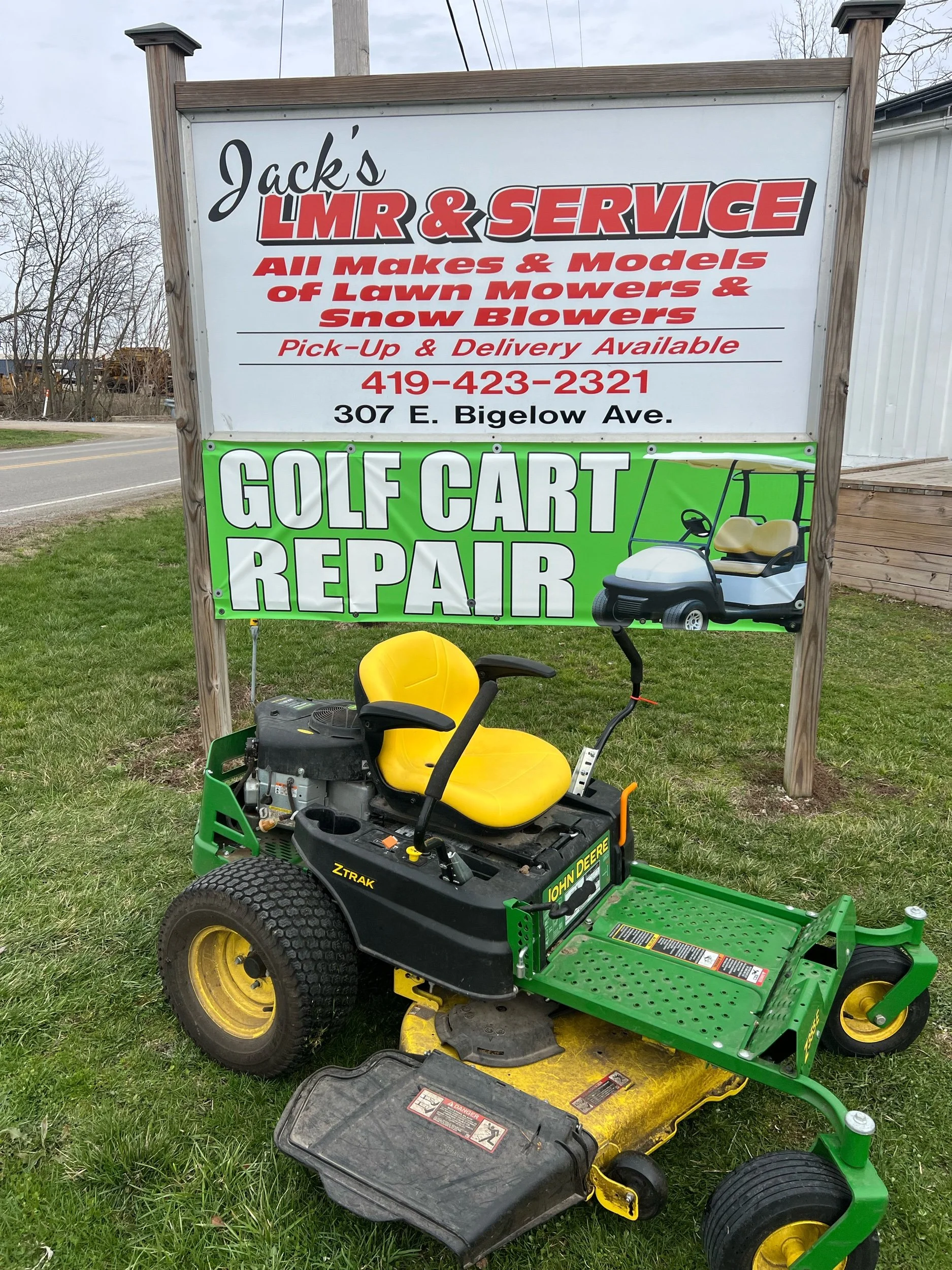 John Deere 48 inch cut EXTREMELY LOW HRS. Runs great. Fully serviced $2850 plus tax. Located at Jacks lawnmower shop at 307 E. Bigelow Ave. Findlay Ohio open Monday through Friday 9 to 430 and Saturday 9-1. Delivery is available at buyers expense. All units come with warranty 419-423-2321. Trade-ins are welcome. If you would like to purchase over the phone for delivery, please ask for Blake. We have over 100 units in stock.