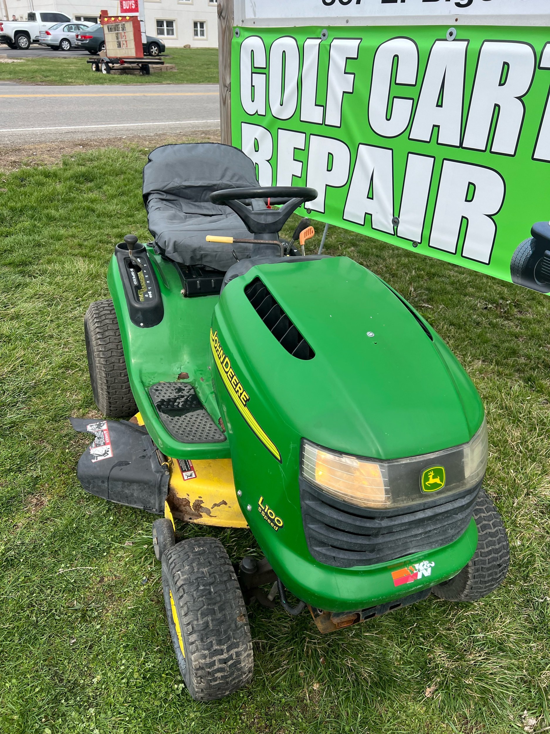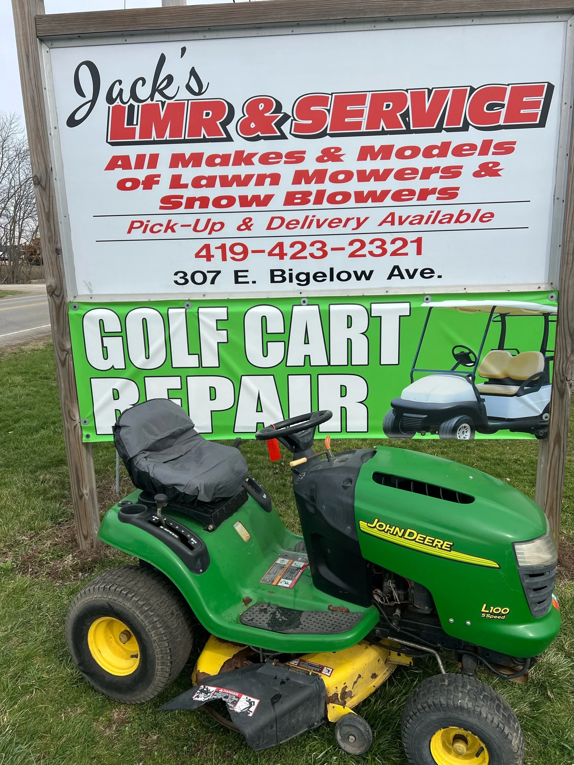 John Deere L100 mower 42 inch runs good. $950plus tax. Located at Jacks lawnmower shop at 307 E. Bigelow Ave. Findlay Ohio open Monday through Friday 9 to 430 and Saturday 9-1. Delivery is available at buyers expense. All units come with warranty 419-423-2321. Trade-ins are welcome. If you would like to purchase over the phone for delivery, please ask for Blake. We have over 100 units in stock.