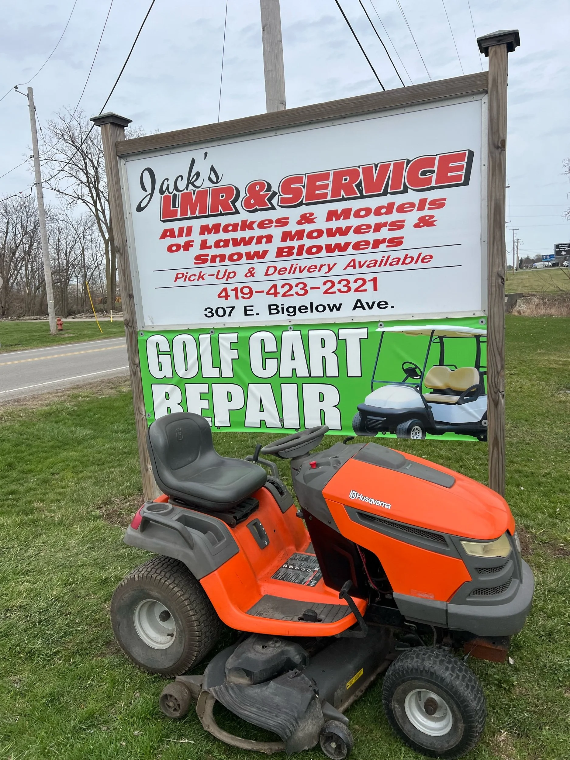 Husqvarna rider runs good $1000 plus tax. Located at Jacks lawnmower shop at 307 E. Bigelow Ave. Findlay Ohio open Monday through Friday 9 to 430 and Saturday 9-1. Delivery is available at buyers expense. All units come with warranty 419-423-2321. Trade-ins are welcome. If you would like to purchase over the phone for delivery, please ask for Blake. We have over 100 units in stock.